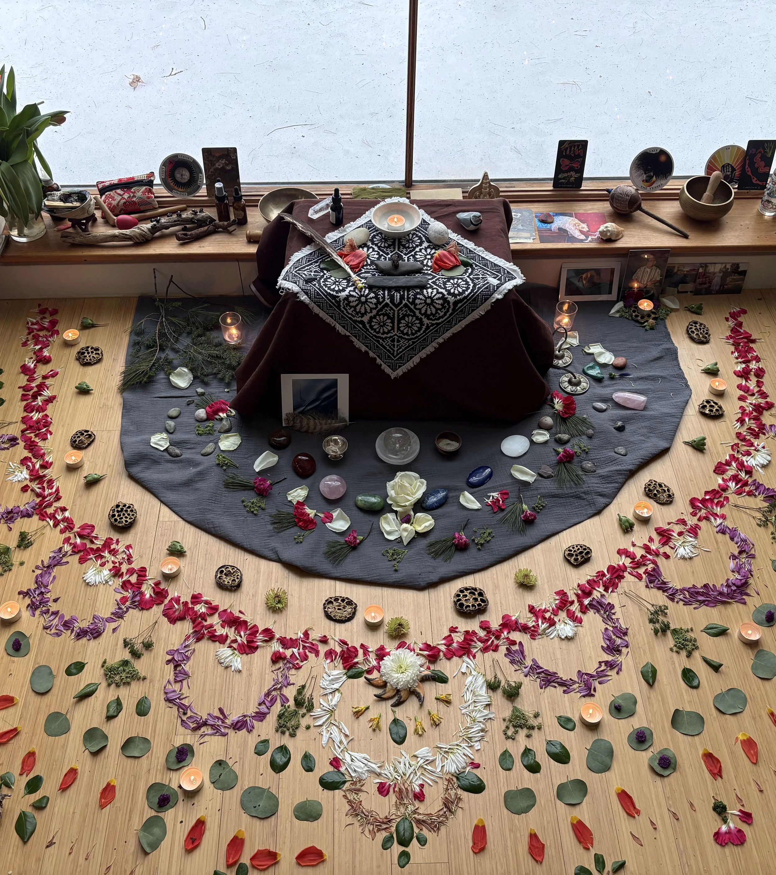 An immersive journey of ritual, healing, connection and opening, with ourselves, each other and the unseen world. The time will be largely oriented inwards, with opportunities for relationality and connection. Our container will be woven with altar building, curated music, living song and instrumentation, mandala making and deep internal exploration. We will bookend our time together with intention setting, shared reflection, and communion with the land.